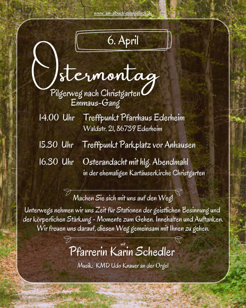 16:30 Uhr Osterandacht mit Abendmahl in Christgarten
